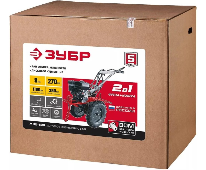 Мотоблок ЗУБР МТШ-600 Мотоблок бензиновый с ВОМ, 270 см3