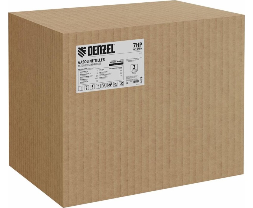 Мотоблок DENZEL Мотоблок DPT-270SB, 7 л.с., ремен.сцеп, фрез 3х4, ШОМ, без колес, передачи 2В/1Н 56452