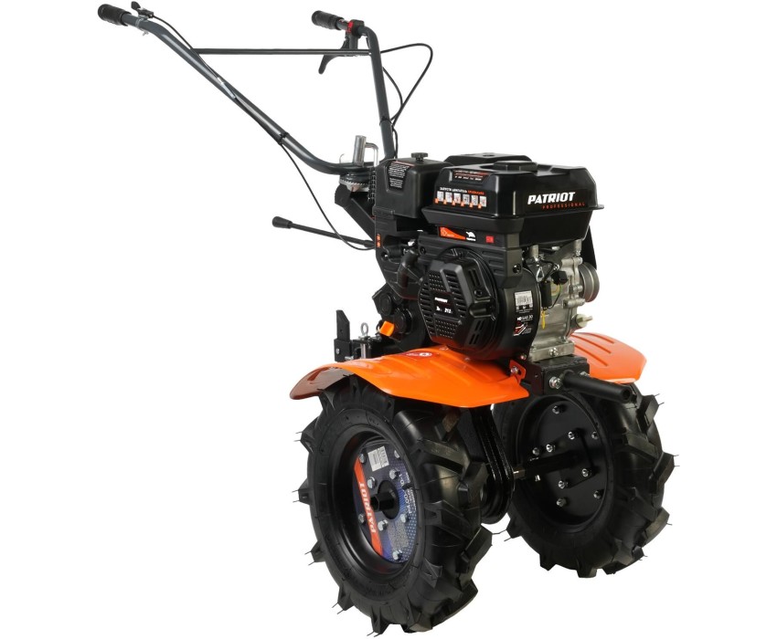 7 л.с, 212 см.куб, топливный бак 3.6 л, 0.6 л картер, ширина обработки 85 см, глубина 16-30 см, фрезы 32 см, чугунный редуктор, 4 вперед/2 назад, 4-х тактный двигатель, шкив; Складской типоразмер номенклатуры: 01.Оч.тяж(50+); Ширина вспашки, см: 85; Глубина вспашки, см: 16-30; Рекомендуемая площадь обработки, м²: 1 000; Мощность, л.с.: 7; Мощность, Вт: 5 150; Объем двигателя, см.куб: 212; Модель двигателя: PATRIOT 212cc; Охлаждение: воздушное; Тип топлива: бензин АИ-92; Стартер: ручной; Свеча зажигания: F7TC; Воздушный фильтр: бумажный картридж; Макс. частота вращения фрез, об/мин: 1 передача - 41/93; 2 передача - 53/120; задний ход - 61/79; Расход топлива (при 100% нагрузке), л/час: 1,6; Cкорость передвижения, км/час: 10; Количество передач: 4 вперед/2 назад; Механизм сцепления: клиноременное, путем нажатия ремня роликом; Приводной ремень хода: 17Х950Li; Редуктор: шестеренчато-цепной, чугунный; Тип заправки редуктора: масло трансмиссионное; Объем заправки редуктора, л: 1,2; Диаметр фрез, мм: 320; Диаметр колес, мм: 460; Тип колес: P4.00-10D-1; Сошник: стальной; Подключение активной навески: шкив; Колеса для транспортировки: нет; Складная рукоятка: есть;