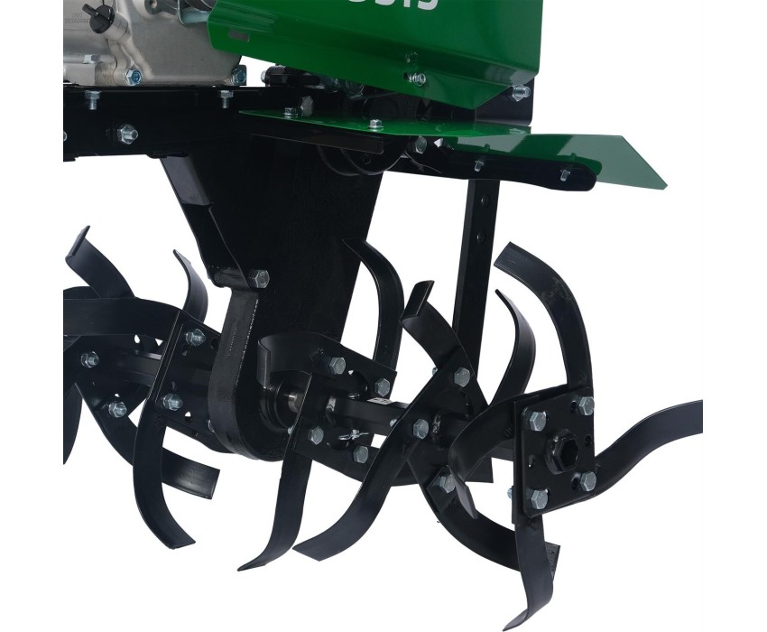 Мощность 7 л.с., объем двигателя 212 см3, 3600 об/мин,топливный бак 3,6 л, масляный бак 0,6 л, ременное сцепление, шестерёнчато–цепной редуктор, шкив отбора мощности, передачи: 3+1, пневматические колеса 4*10, фрезы ø30 см, 24 фрезы, Скорость вращения фрез мин/макс 37/82/113 - 52 об/мин, ширина вспашки 850 мм, Глубина вспашки 350 мм, универсальное крепление навесного оборудования, 62 кг.