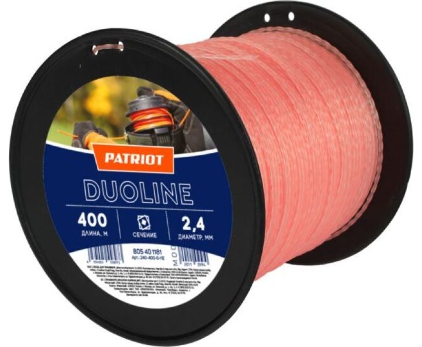 Леска PATRIOT 805401181 D 2,4 мм L 400 м (скрученный квадрат, двухцветная)