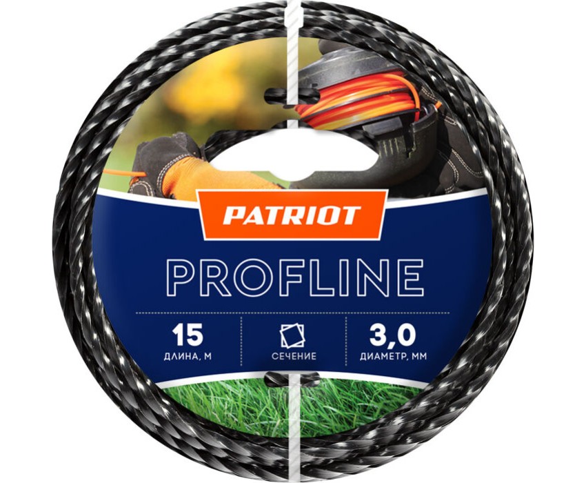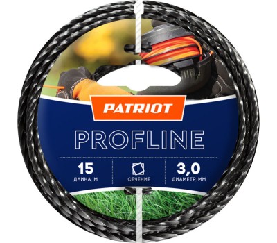 Леска PATRIOT 805402211 D 3,0 мм L 15 м (скрученный квадрат, черный) Леска ProfLine для триммеров