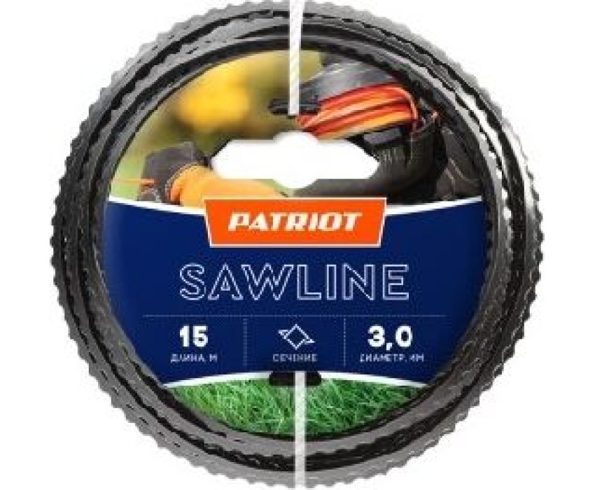 Леска PATRIOT 805403311 D 3,0 мм L 15 м (квадрат,пилообразный профиль) Леска ProfLine для триммеров