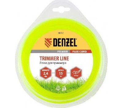 Леска для триммера DENZEL Леска для триммера звезда 2,4 мм х 15 м, блистер FLEX CORD 96112