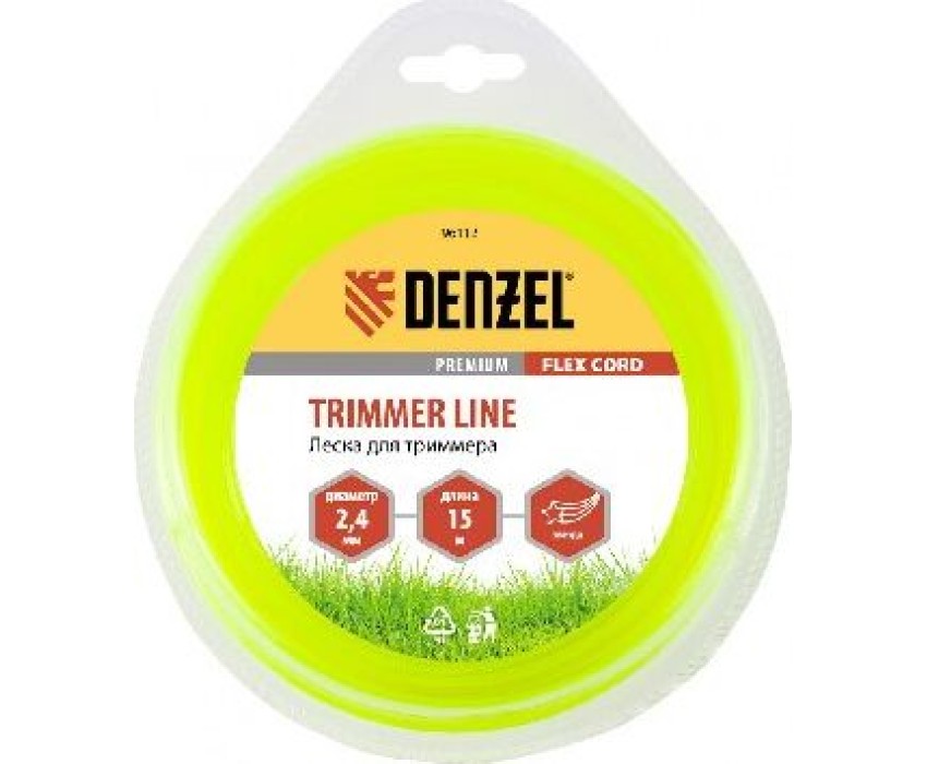 Леска Denzel Flex cord применяется в качестве режущего материала в электрических и бензиновых триммерах. Изготовлена из высококачественного нейлона с формой сечения "звезда", обладающего высокой износостойкостью. В поставку входит блистер с леской длиной 15 м и диаметром сечения 2,4 мм. За счет наличия острых граней, леска подходит для ровного скашивания травы различной жесткости, а также молодого кустарника.