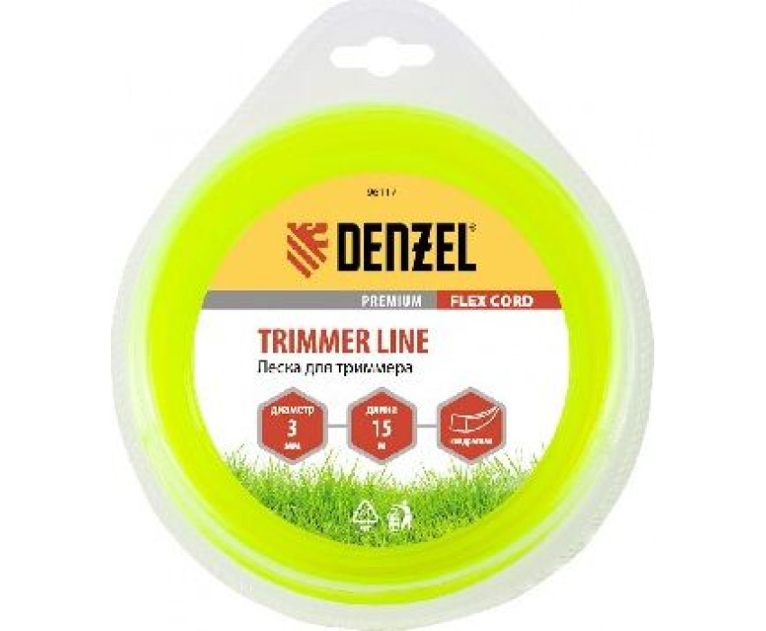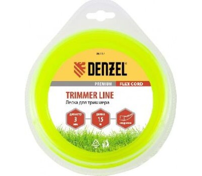 Леска для триммера DENZEL Леска для триммера квадрат 3 мм х 15 м, блистер FLEX CORD 96117