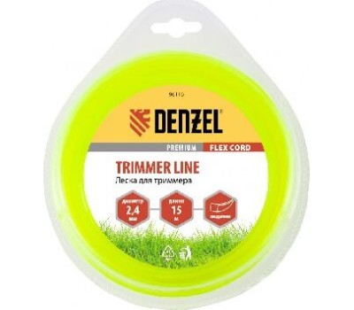 Леска Denzel Flex cord применяется в качестве режущего материала в электрических и бензиновых триммерах. Изготовлена из высококачественного нейлона с квадратной формой сечения, обладающего высокой износостойкостью. В поставку входит блистер с леской длиной 15 м и диаметром сечения 2,4 мм. За счет наличия острых граней, квадратная леска подходит для скашивания травы различной жесткости, бурьяна и молодого кустарника.