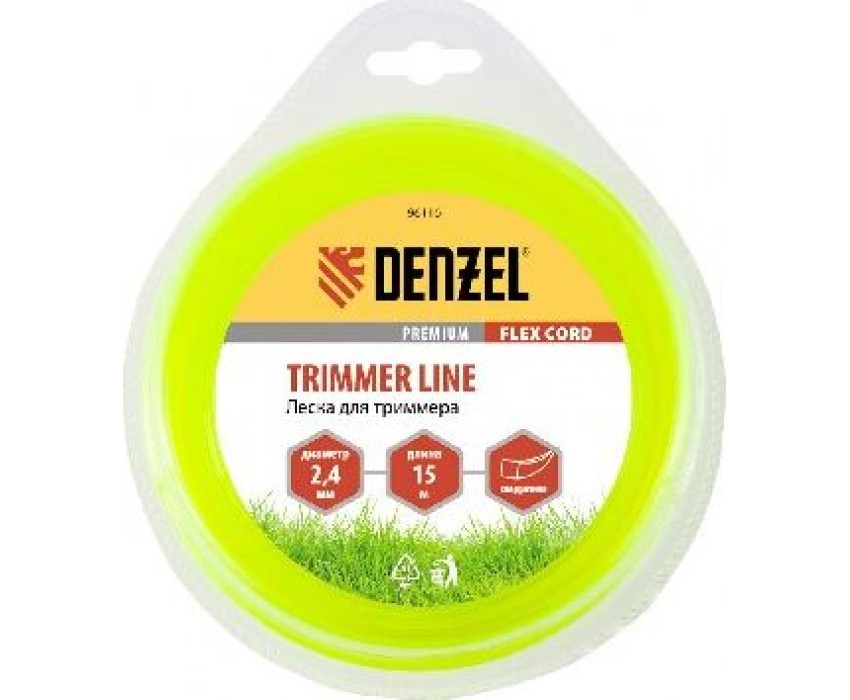 Леска для триммера DENZEL Леска для триммера квадрат 2,4 мм х 15 м, блистер FLEX CORD 96116