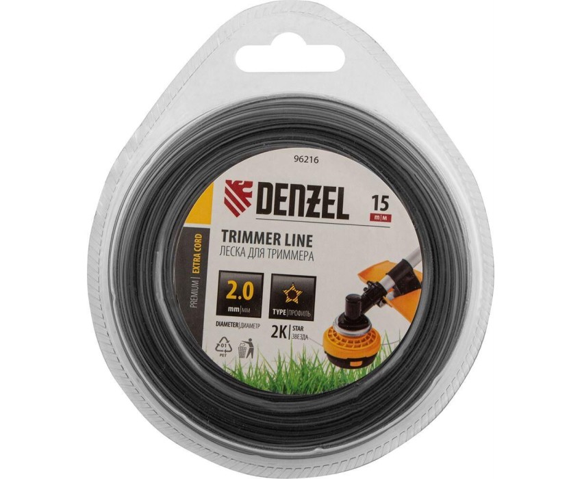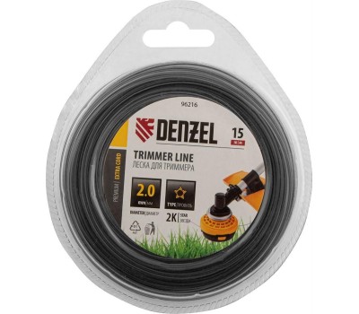Леска для триммера DENZEL Леска для триммера двухкомпонентная звезда, 2,0мм х 15м, блистер EXTRA CORD 96216