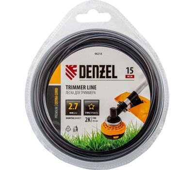 Леска для триммера DENZEL Леска для триммера двухкомпонентная звезда, 2,7мм х 15м, блистер EXTRA CORD 96218
