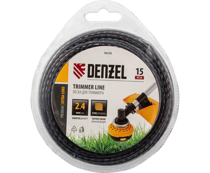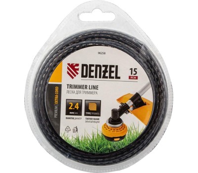Леска для триммера DENZEL Леска для триммера двухкомпонентная зубчатый квадрат, 2,4мм х 15м, блистер EXTRA CORD 96258