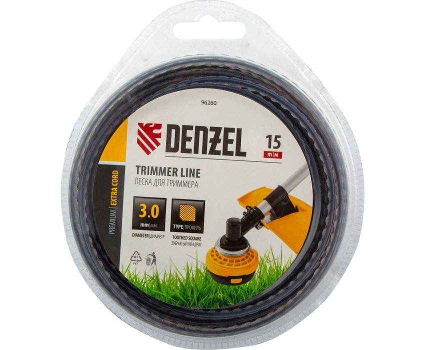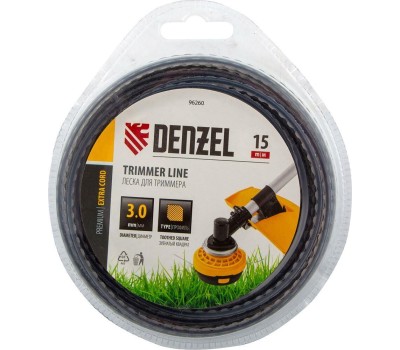 DENZEL Леска для триммера двухкомпонентная зубчатый квадрат, 3,0мм х 15м, блистер EXTRA CORD 96260