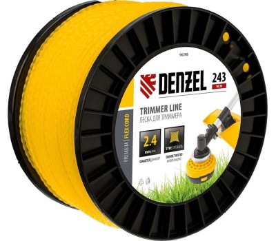 Леска DENZEL Леска для триммера витой квадрат, 2,4мм х 243м, на DIN катушке FLEX CORD 96298