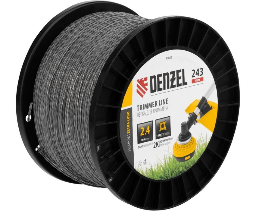 DENZEL Леска для триммера двухкомпонентная витой квадрат, 2,4мм х 243м, на DIN катушке EXTRA CORD 96823