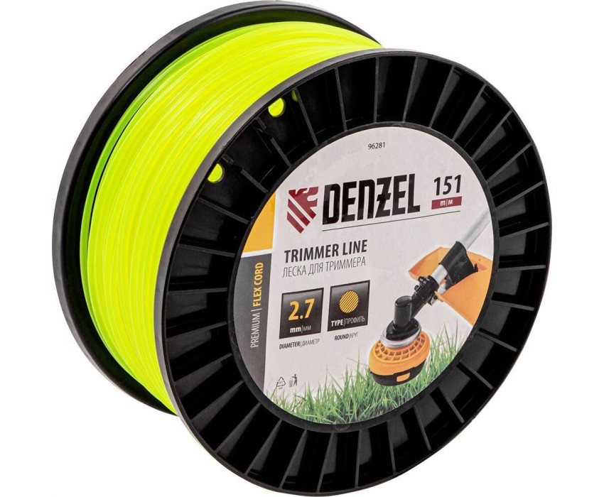 DENZEL Леска для триммера круглая, 2,7мм х 151м, на DIN катушке FLEX CORD, 96281