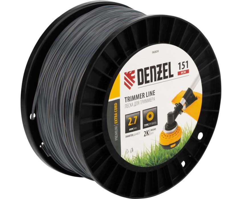 DENZEL Леска для триммера двухкомпонентная круглая, 2,7мм х 151м, на DIN катушке EXTRA CORD 96809