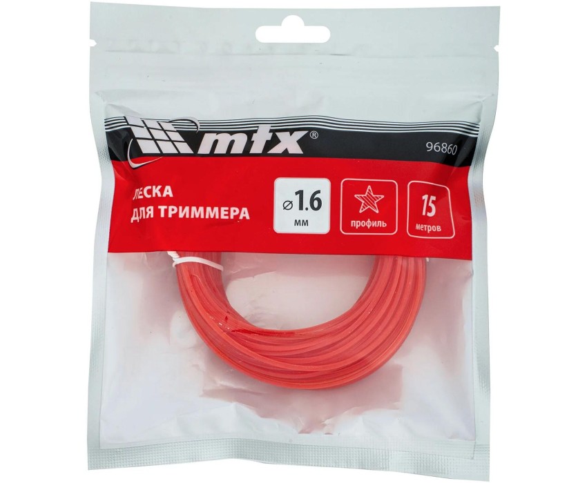 Леска для триммера MTX 96860 с сечением «звезда», толщиной 1,6 мм и длиной 15 м, предназначена для стрижки газонной травы, необходима для ухода за дачным участком.