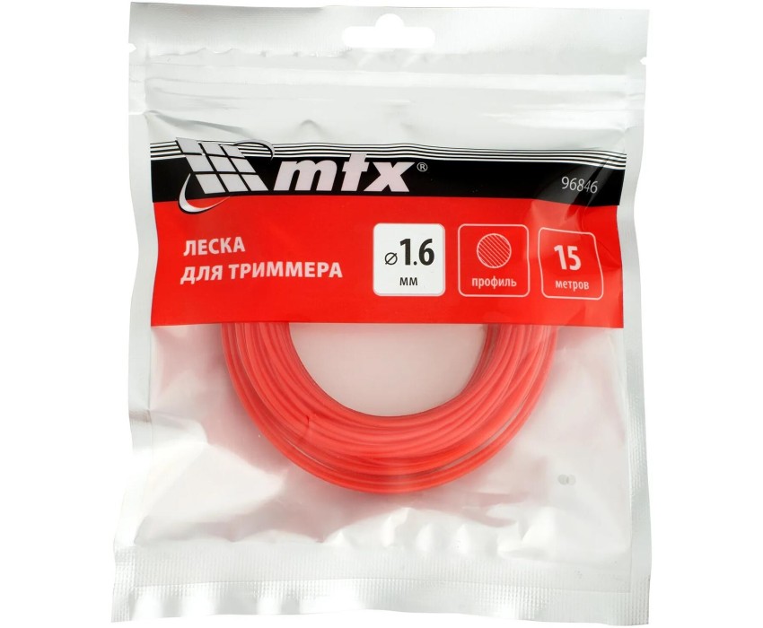Леска для триммера MTX 96846 круглого сечения, диаметром 1,6 мм и длиной 15 м, предназначена для скашивания мягкой газонной травы.