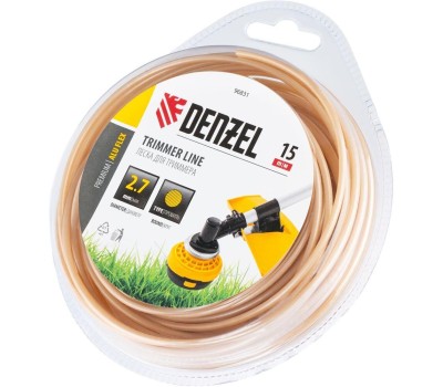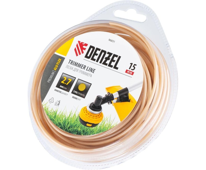 Леска для триммера DENZEL Леска для триммера армированная алюминием круглая, 2,7мм х 15м, блистер ALUFLEX 96831