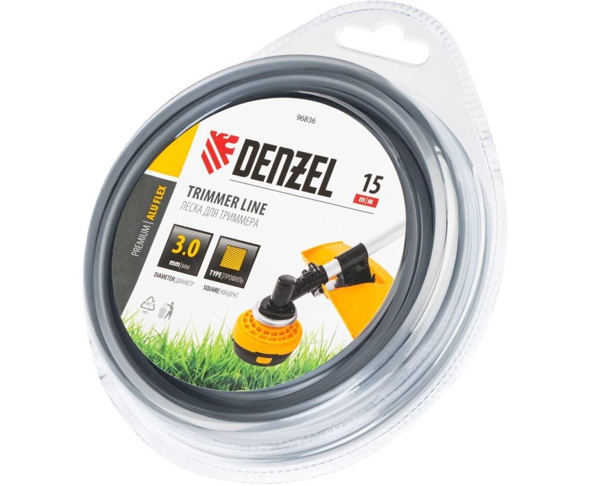 Армированная алюминием леска для триммера Denzel ALUFLEX 96836 квадратного сечения, толщиной 3,0 мм и длиной 15 мм, в блистере, предназначена для скашивания густой травы и растений с толстыми стеблями. Отличается повышенной износостойкостью. Заправляется в катушку бензинового триммера с объемом двигателя 25-52 см3. Леска будет полезна владельцам дачных участков.ПреимуществаВысокий ресурс — леска из полиамида, армированного алюминием, отличается повышенной прочностью, устойчивостью к обрыву и истиранию, поэтому расходуется экономно.Эффективность — благодаря острым граням леска легко и быстро срезает траву.Продуманная упаковка — корд поставляется в блистере, удобном для хранения и транспортировки.