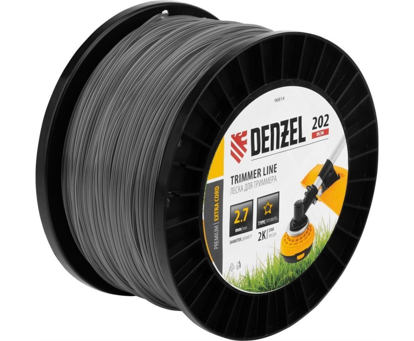 Леска для триммера DENZEL Леска для триммера двухкомпонентная звезда, 2,7мм х 202м, на DIN катушке EXTRA CORD 96814