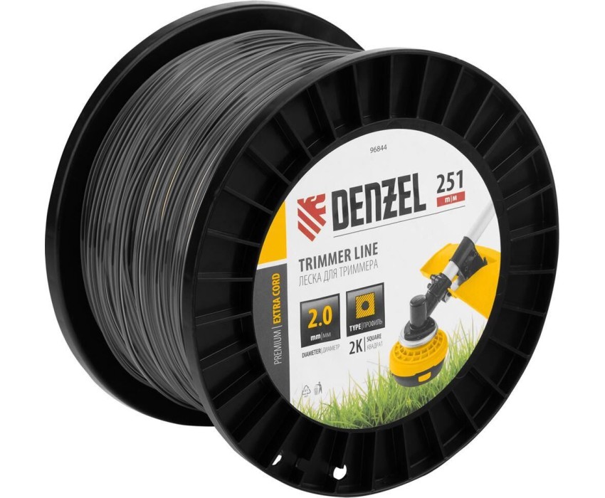 Леска для триммера DENZEL Леска для триммера двухкомпонентная квадрат, 2,0мм х 251м, на DIN катушке EXTRA CORD 96844