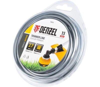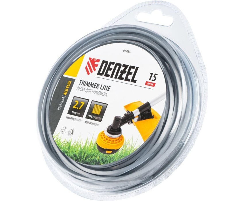 Леска для триммера DENZEL Леска для триммера армированная алюминием квадратная, 2,7мм х 15м, блистер ALUFLEX 96835