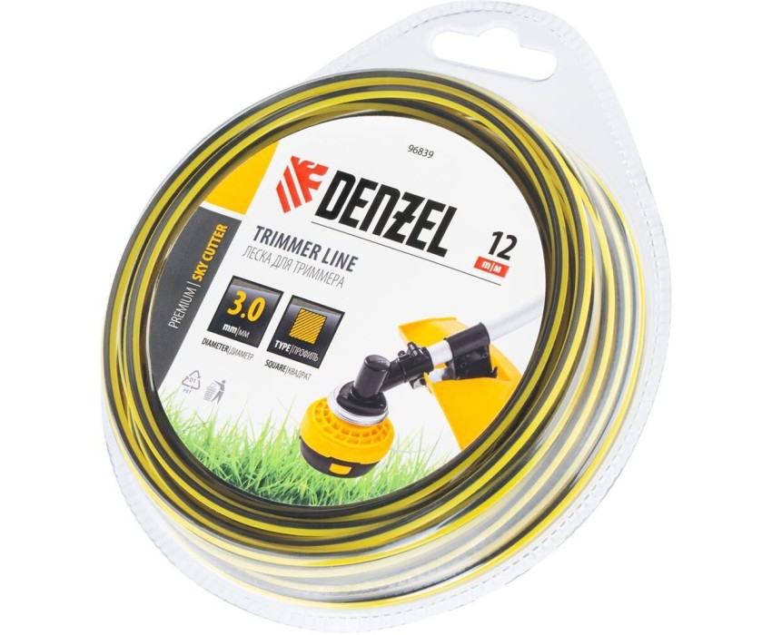 Леска для триммера DENZEL Леска для триммера двухкомпонентная квадратная, 3,0мм х 12м, блистер SkyCutter 96839