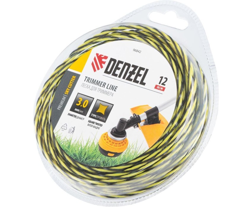 Леска DENZEL Леска для триммера двухкомпонентная витая квадратная, 3,0мм х 12м, блистер SkyCutter 96842