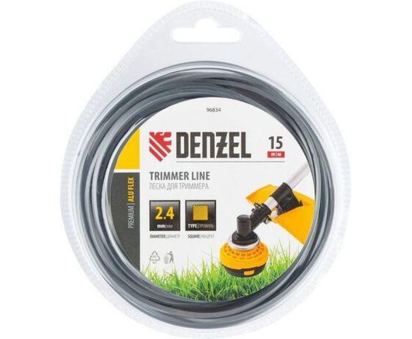 Леска для триммера DENZEL Леска для садовых триммеров Aluflex, 2.4мм, 15м [96834]