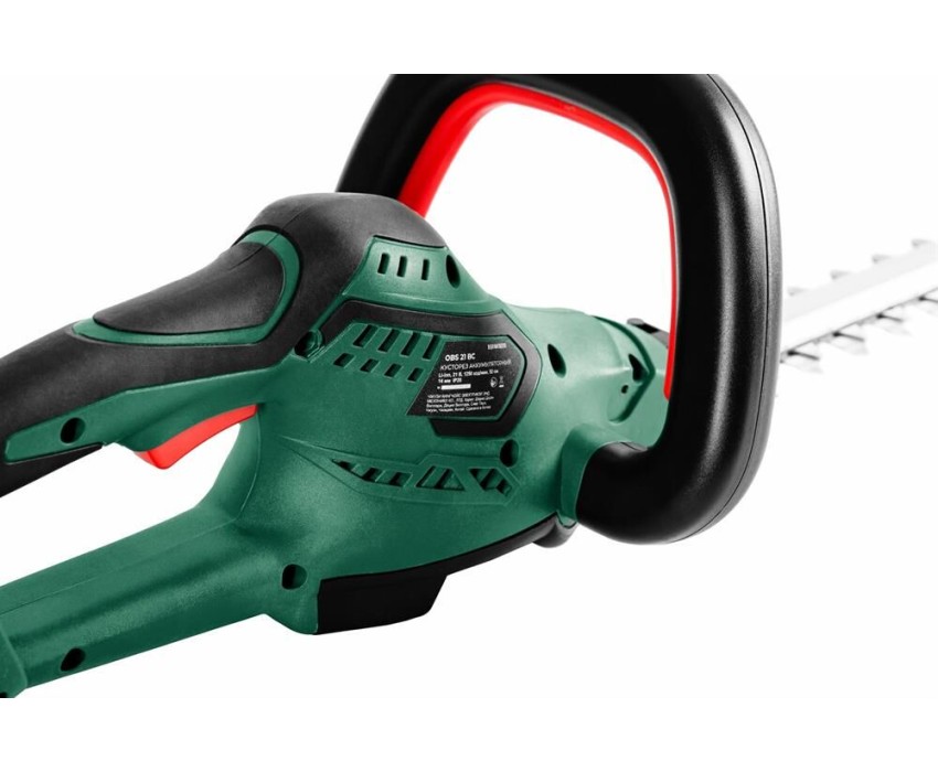 FAVOURITE OBS 21 BC – тихий, легкий аккумуляторный хедж-триммер для ухода за живой изгородью и кустами. В данном кусторезе все предусмотрено для безопасной и удобной работы: защитный кожух защищает руки от летящих обрезков веток; большая пусковая клавиша позволяет комфортно работать в плотных перчатках; заточенные лезвия аккуратно обрезают ветки толщиной до 14 мм, а ветви большего размера просто не попадают на ножи. Преимущества • Питание от аккумулятора - отсутствие выхлопов, свобода передвижения, тихая работа; • Две обрезиненные нескользящие рукоятки – надежная фиксация и контроль инструмента; • Малый вес – комфорт в работе даже для хрупкой девушки; • Крупная пусковая клавиша – удобная работа в перчатках; • Лазерная заточка лезвий двухстороннего ножа – чистая и аккуратная обреза, с минимальным повреждением растений; • Единая аккумуляторная платформа OBS – аккумуляторы, совместимые с линейкой аккумуляторного инструмента ONE BATTERY SYSTEM.
