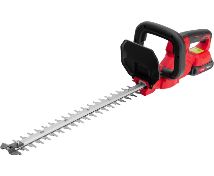 Основные характеристики Тип аккумулятора - Li-Ion Время зарядки аккумулятора, ч - 3 Длина режущей кромки для кустарника, мм - 510 Емкость аккумулятора, Ач - 2 Индикация и дисплеи - индикатор уровня заряда аккумулятора Напряжение аккумулятора - 20 В Тип двигателя - электрический щеточный Тип ножа - двусторонний Функциональные возможности - изменения угла наклона рукояти Число ходов, ход/мин - 1400 Комплектация товара Аккумуляторный кусторез - 1 шт Батарея аккумуляторная - 1 шт Зарядное устройство - 1 шт Защитный кожух - 1 шт Масленка - 1 шт Руководство по эксплуатации с гарантийным талоном - 1 шт Модуль для ухода за кустами - 1 шт