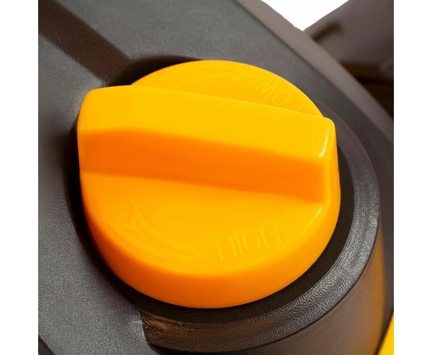 складная рукоятка, колеса, Блокировка от случайного включения, бесступенчатая регулировка глубины обработки, защита от перегрева