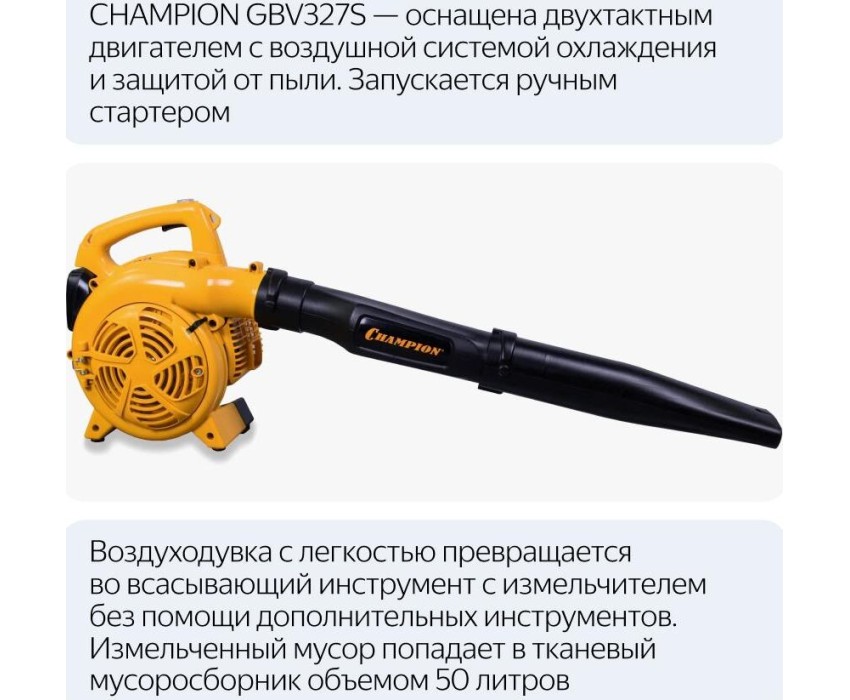 Воздуходувка CHAMPION GBV327S Воздуходувка-измельчитель
