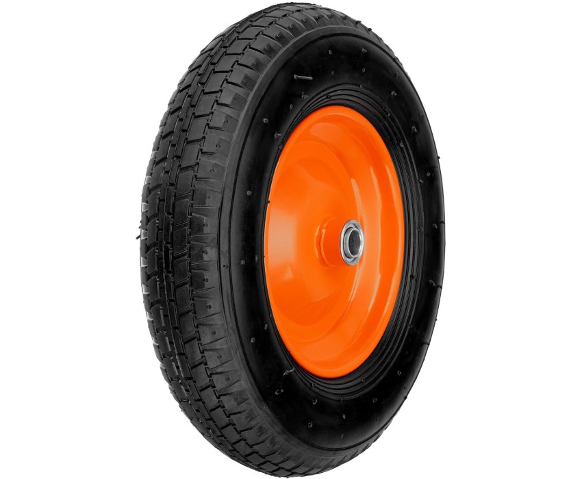 Пневматическое колесо 4.80/4.00-8 Palisad 68948 диаметром 380 мм, с длиной оси 90 мм и внутренним диаметром подшипника 20 мм, предназначено для перевозки грузов с помощью тачки. Подходит к тачкам Palisad 68923, 689233, 68937, Сибртех 689643 и др. Колесо с шариковыми подшипниками обеспечивает высокую проходимость и рассчитано на ежедневное использование на ровном или рыхлом грунте. Преимущества Надежность и коррозионная стойкость — стальной диск изготовлен методом точечной сваркой половинок по всей окружности и покрыт порошковой краской. Бесшумное и безопасное перемещение — резиновая шина не портит напольное покрытие и двигается очень тихо. Комфортная работа — пневматическое колесо эффективно поглощает вибрации даже при полной загрузке тачки.