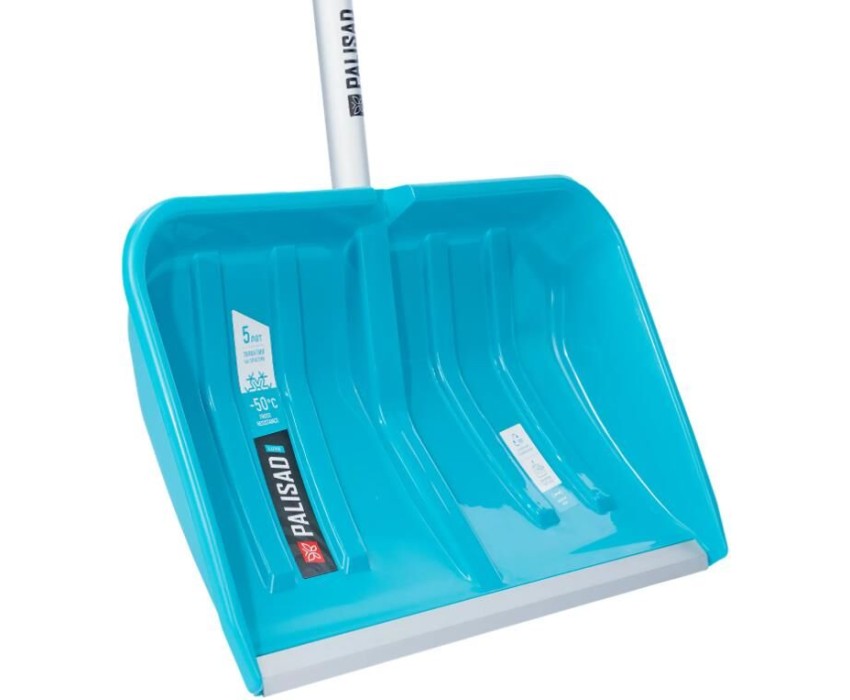 Лопата-скрепер Palisad LUXE 61727 размером 550 x 340 x 1450 мм, с ковшом из полипропилена и алюминиевым черенком с ПВХ-накладкой, предназначена для уборки снега. Широкий ковш с бортиками вмещает большое количество снега. Лопата позволяет расчистить садовую дорожку, тротуар, площадку перед гаражом и т.д.