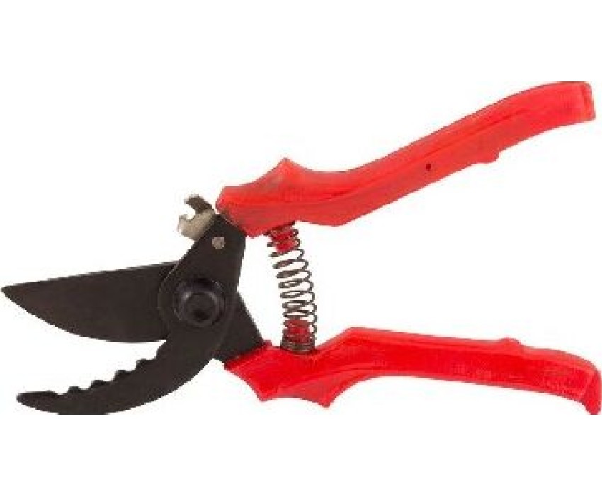 Назначение: для обрезки садовых растений. Материал: иснтрументальная сталь, полипропилен. Покрытие лезвий: оксидированное Металлическая защелка. Режущая способность до 15мм сырой древесины. Длина: 220 мм. Масса: 244 г. Упаковка: картонная подложка