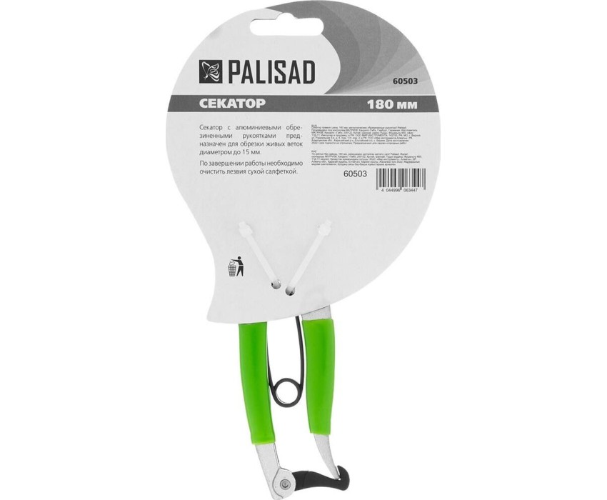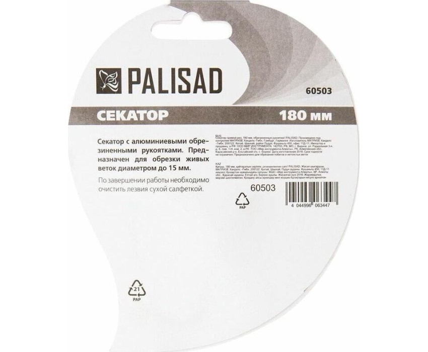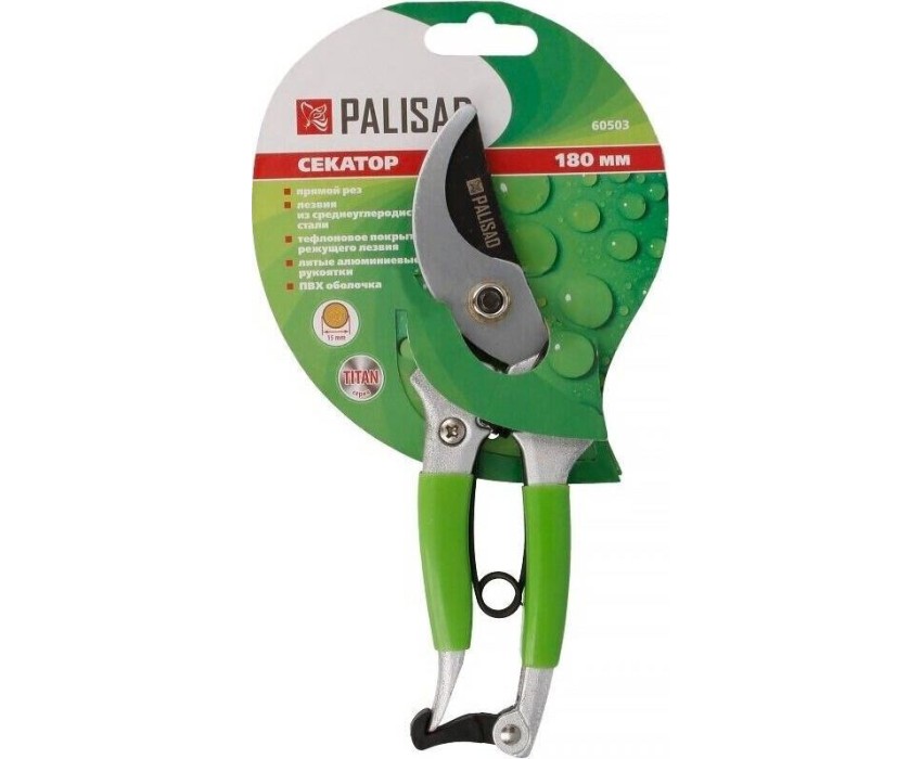 Секатор PALISAD Секатор прямого реза, 180 мм, металлические обрезиненные рукоятки 60503