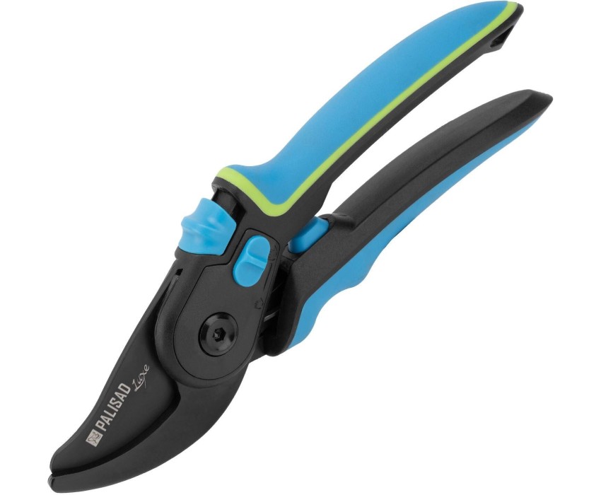 Секатор прямого реза Palisad LUXE 604795 длиной 225 мм, с регулировкой захвата и трехкомпонентными рукоятками, используется для срезания живых веток толщиной до 24 мм. Режущее лезвие перемещается в плоскости, параллельной опорному, поэтому срез получается ровным и чистым, а ущерб для растения сведен к минимуму. Тефлоновое покрытие лезвия уменьшает трение, а шарнир особой конструкции увеличивает силу сжатия на 10%, что позволяет пользователю прикладывать меньше усилий. Плотность примыкания лезвий можно регулировать при помощи винта. Секатор будет полезен для ухода за растениями на загородном участке. Преимущества Долговечность — лезвия изготовлены из прочной высокоуглеродистой стали и покрыты антикоррозионным составом, трехкомпонентные полипропиленовые рукоятки устойчивы к климатическим воздействиям. Высокий ресурс — режущее лезвие прошло индукционную закалку и имеет прецизионную заточку, поэтому долго сохраняет эксплуатационные качества. Удобная работа с ветками разной толщины — переключатель «большая-малая рука» позволяет регулировать величину захвата. Надежная конструкция — между рукоятками имеется демпфер, защищающий их от поломки. Комфортная работа — благодаря выемке под палец в нижней рукоятке и вставкам из термопластичной резины инструмент удобно держать в руке. Безопасность — специальный фиксатор не дает лезвиям самопроизвольно раскрываться во время хранения или транспортировки.