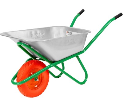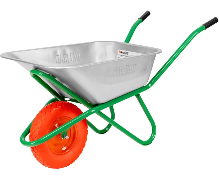 Садово-строительная тачка Palisad 689688 грузоподъемностью 180 кг, с кузовом объемом 120 л и полиуретановым (PU) колесом, предназначена для транспортировки грузов. Подходит для перемещения сыпучих материалов (песка, цемента, гравия и т.д.), вывоза строительного и садового мусора, а также для перевозки грунта, дерна, мульчи и других грузов. Одноколесная тачка отличается повышенной маневренностью, полиуретановое колесо не требует подкачки. Тачка незаменима на строительной площадке, дачном участке, складе. Преимущества Надежная конструкция — рама диаметром 32 мм и опора диаметром 28 мм изготовлены из стальной трубы с толщиной стенки 1,2 мм, поэтому тачка выдерживает нагрузку до 180 кг. Устойчивость к деформации — толщина стенок кузова составляет 0,7 мм, его края завальцованы для повышения ударопрочности. Защита от разрушения — цинковое покрытие предохраняет кузов от образования коррозии. Удобная эксплуатация — передний упор позволяет производить фронтальную разгрузку. Долговечность — полиуретановое колесо устойчиво к проколам и порезам.