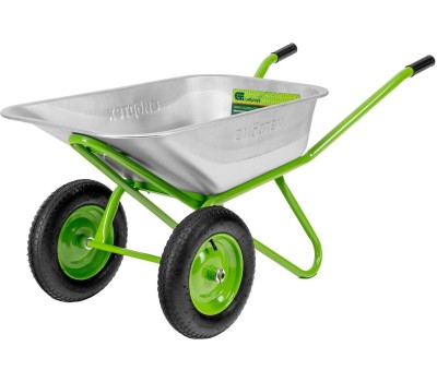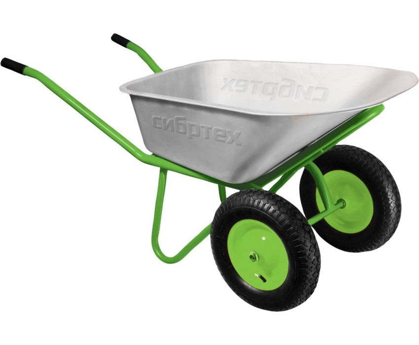 Садово-строительная двухколесная тачка Сибртех 689648 грузоподъемностью 230 кг, с кузовом объемом 110 л, предназначена для транспортировки тяжелых грузов. Подходит для перемещения сыпучих материалов (песка, цемента, гравия и т.д.), вывоза строительного и садового мусора, а также для перевозки грунта, дерна, мульчи и других грузов. 2 пневматических колеса обеспечивают плавность хода и устойчивость нагруженной тачки. Тачка незаменима на строительной площадке, дачном участке, складе. Преимущества Надежная конструкция — рама диаметром 32 мм и опора диаметром 25 мм изготовлены из стальной трубы с толщиной стенки 1 мм, поэтому тачка выдерживает нагрузку до 230 кг. Устойчивость к деформации — толщина стенок кузова составляет 0,7 мм, его края завальцованы для повышения ударопрочности. Защита от разрушения — цинковое покрытие предохраняет кузов от образования коррозии.