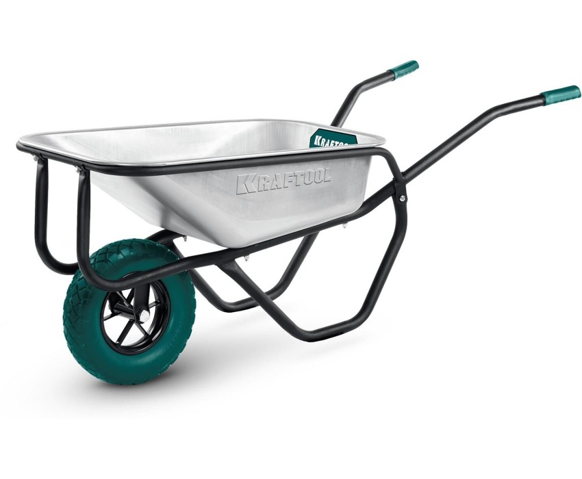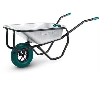 KRAFTOOL MAXDrive-1 110л, 260 кг, одноколесная, с трубным усилителем, кузов 0,9 мм, полиуретановое колесо, тачка строительная (39862)