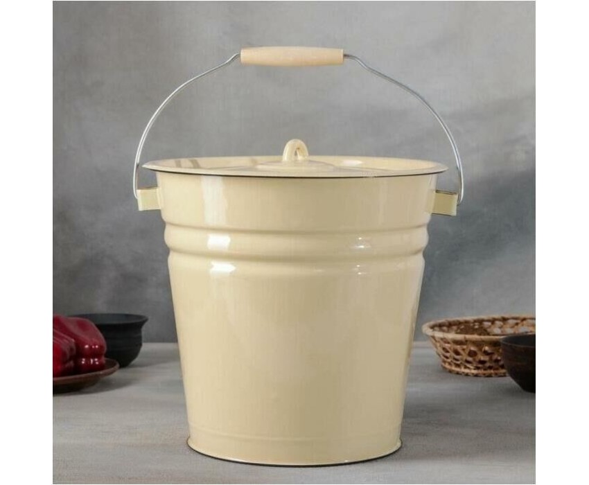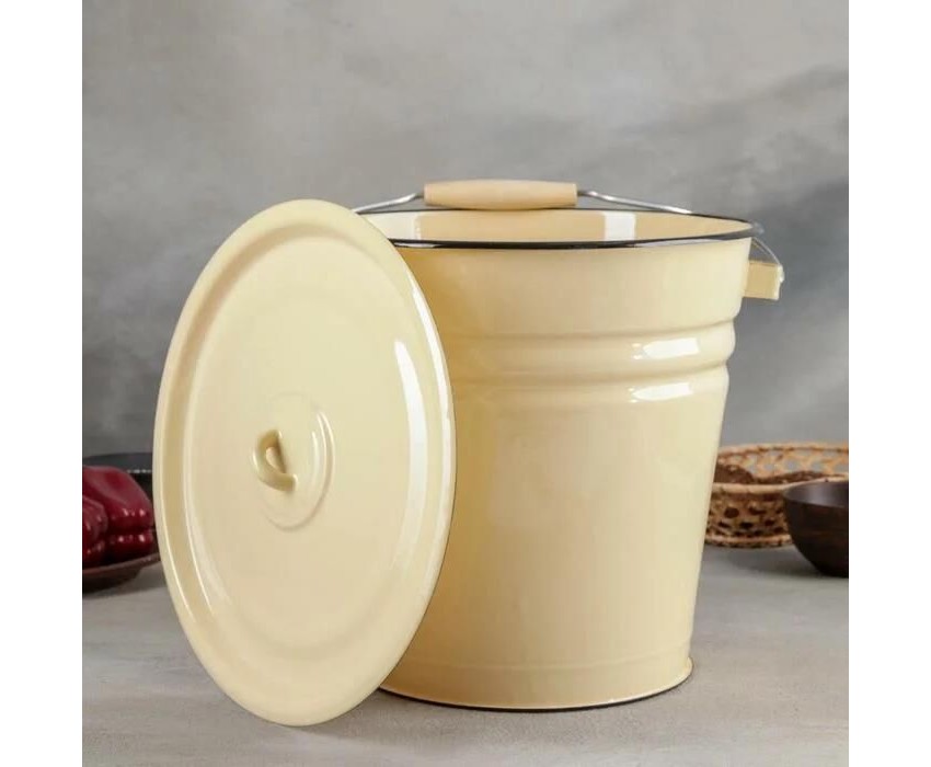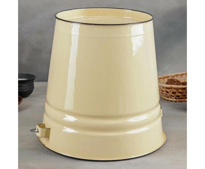 Тип ведро Высота 28 см Длина 32 см Ширина 27 см Диаметр 27.5 см Материал металл Покрытие эмаль Объем 12 л Вес 1.82 кг Форма круглая Особенности для пищевых продуктов, крышка, накладка на ручке, ручка, Крышка в комплекте, подходит для всех типов плит,подходит для хранения пищевых продуктов Дополнительная информация Внутреннее покрытие: эмаль