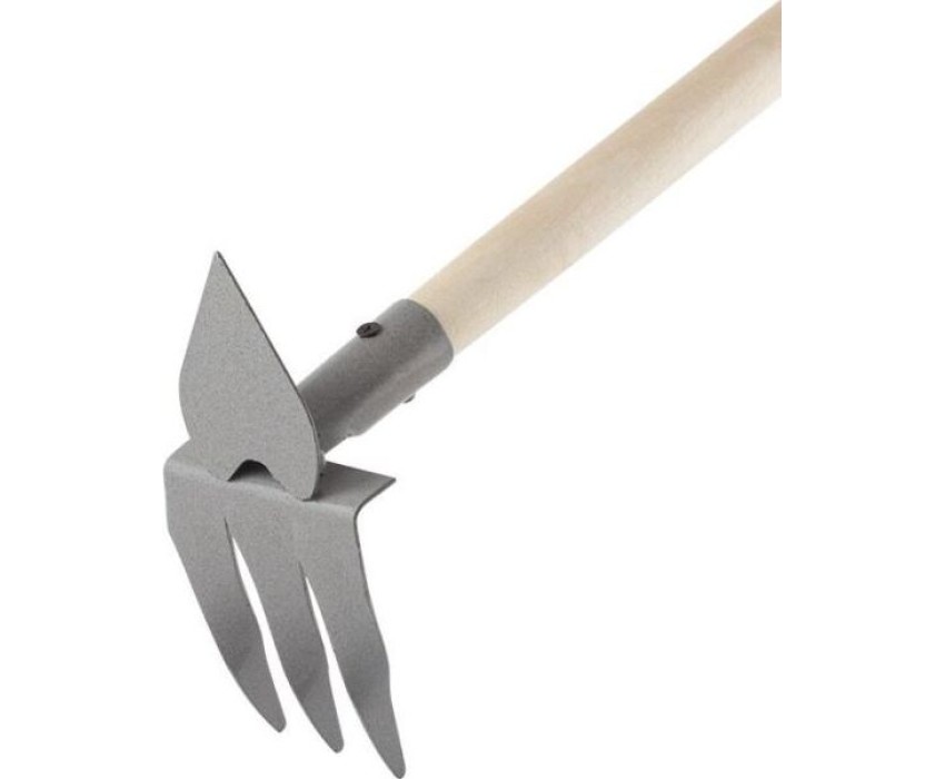 Мотыжка комб. 3-х зуб с/ч, Назначение: почвообрабатывающий инструмент Материал: сталь, толщина 2мм, дерево Порошковая окраска. Длина с черенком - 44см. Ширина - 9см