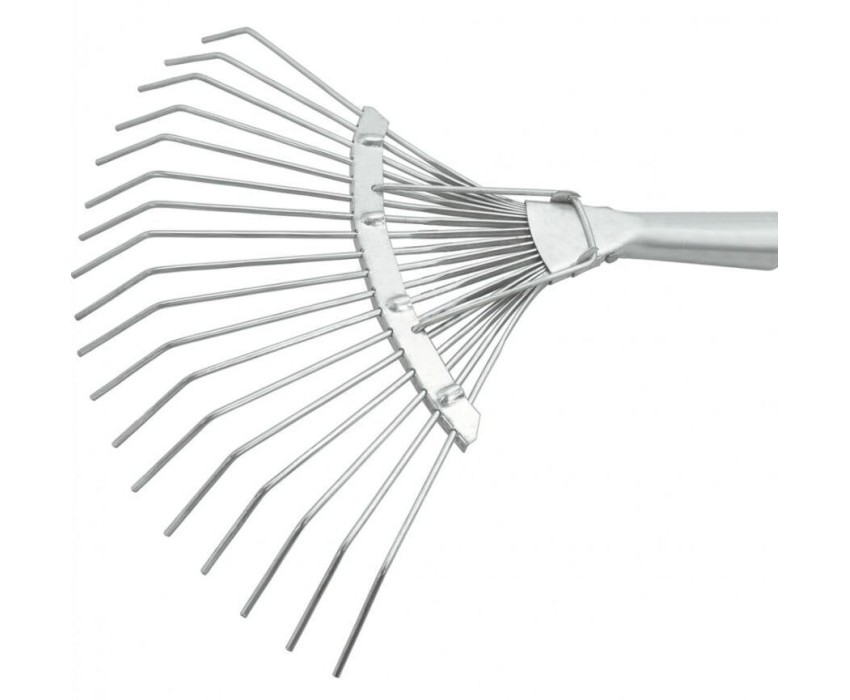 Грабли веерные стальные, 360х1500 мм, 18 круглых зубьев, деревянный черенок 61781 Количество зубьев: 18 Сечение зубьев: круглый зуб Длина: 1500 мм Материал рабочей части: рессорно-пружинная сталь Материал черенка: древесина твердых пород Ширина рабочей части: 360 мм