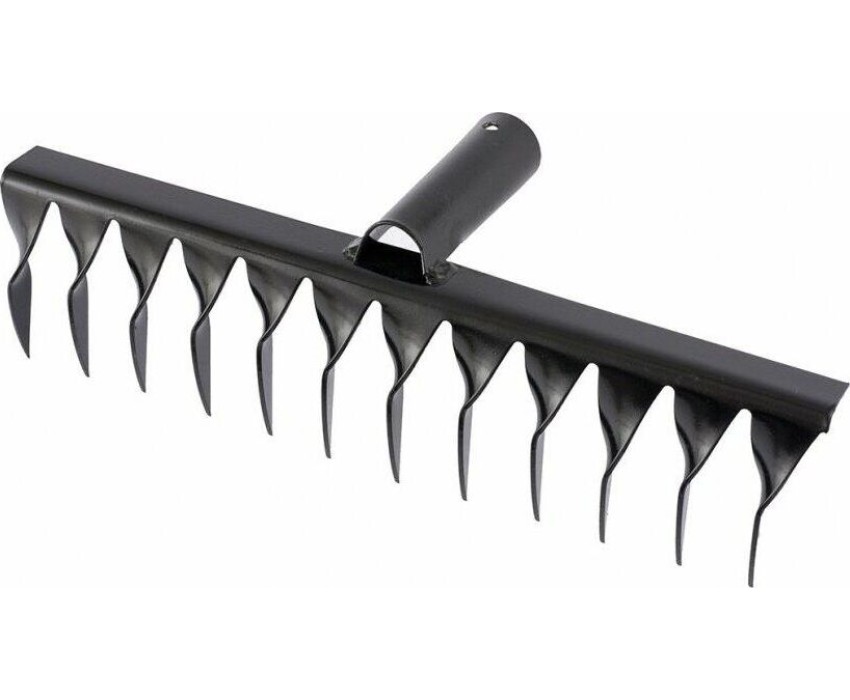Грабли стальные, 300 мм, 12 витых зубьев, без черенка 61740 Количество зубьев: 12 Сечение зубьев: витой зуб Диаметр тулейки: 30 мм Материал рабочей части: конструкционная сталь Ширина рабочей части: 300 мм Покрытие рабочей части: порошковая эмаль