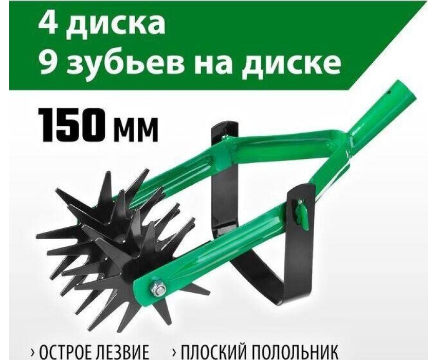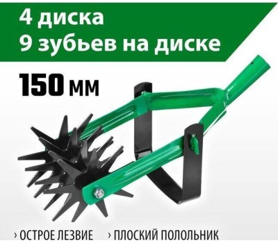 Защитное покрытие полотна: порошковая краска Количество дисков, шт: 4 Материал рабочей части: сталь Рабочая ширина, мм: 150 Ручка/черенок в комплекте: нет С зубцами: нет Тип: звездочный Вес, кг: 1.24