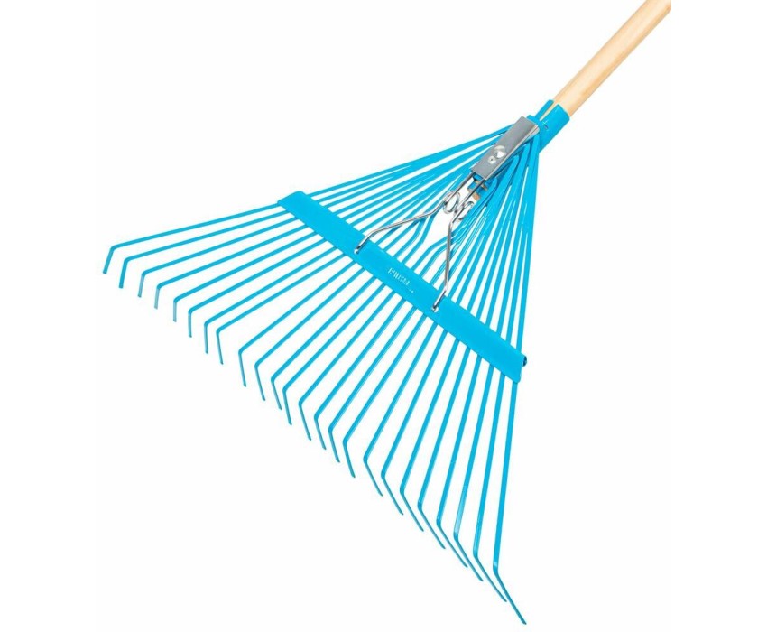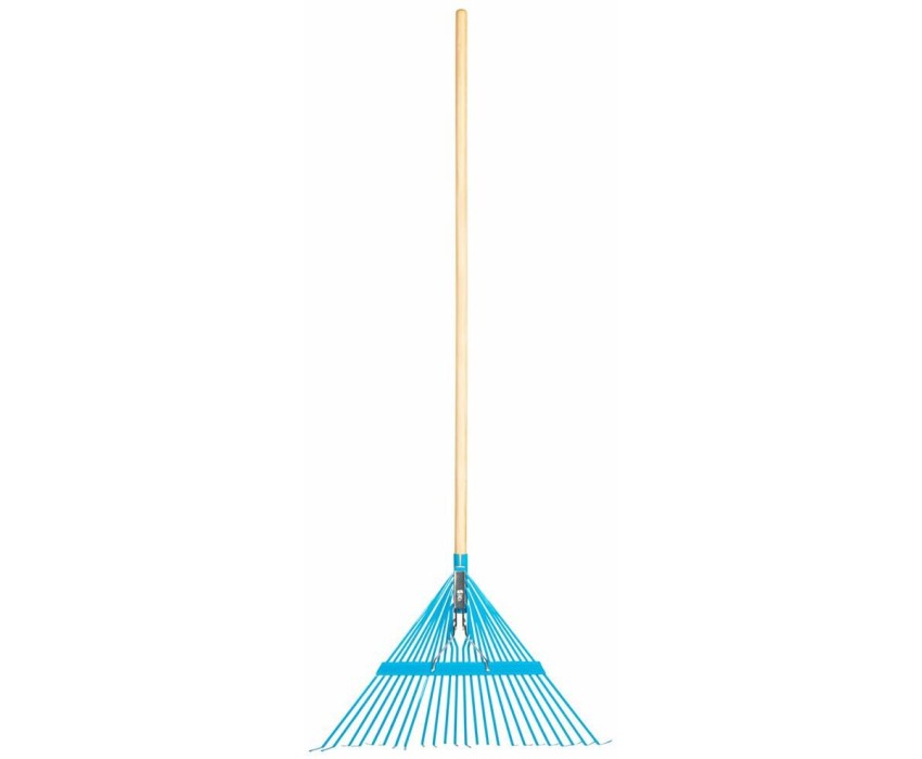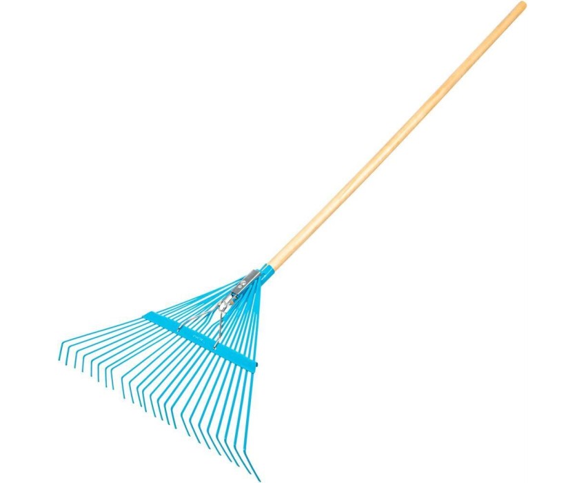 Грабли веерные стальные Palisad LUXE 617905, 540 х 1450 мм, с 24 плоскими зубьями и лакированным черенком, предназначены для очистки от листвы и мусора газонов, придомовых территорий и грядок. Незаменимы на дачном участке. Прямая рабочая кромка обеспечивает высокую эффективность при выполнении уборочных работ.ПреимуществаГрабли изготовлены из рессорно-пружинной стали и покрыты порошковой эмалью, поэтому они долговечны и не боятся коррозии.Поперечная планка повышает прочность инструмента и его устойчивость к нагрузкам.Грабли поставляются в сборе с лакированным черенком, обеспечивающим комфорт в работе.