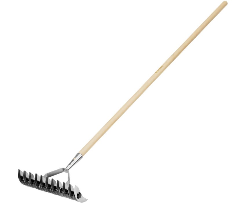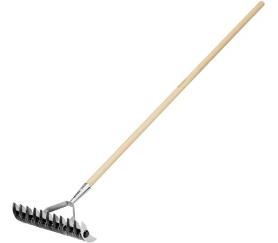 Стальные аэраторные грабли Palisad BASE 61816 с двусторонней рабочей частью шириной 325 мм, с редкими и частыми зубьями (11 и 21 зуб соответственно), предназначены для ухода за газоном. Сторона с редкими зубьями оптимальна для удаления мха и спутанной травы, а также позволяет разбивать комки земли для эффективной аэрации почвы. Сторона с частыми зубьями подходит для вычесывания газона, уборки листьев, скошенной травы и мусора. Инструмент будет полезен для выполнения работ на загородном участке. Поставляются с черенком. Преимущества Прочность — прямые зубья из среднеуглеродистой стали выдерживают интенсивные нагрузки. Защита от разрушения — цинковое покрытие предотвращает образование коррозии. Комфортная работа — деревянный черенок удобно держать в руках, длина инструмента 1660 мм позволяет снизить нагрузку на позвоночник.