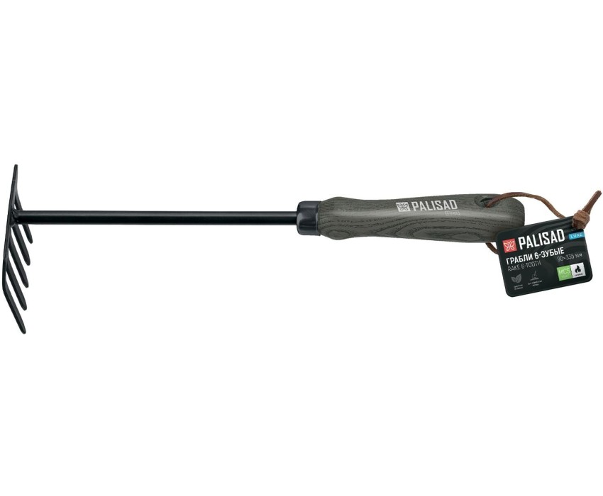 5-зубые грабли Palisad LUXE 62637 длиной 335 мм, со стальной рабочей частью шириной 90 мм, предназначены для рыхления почвы. 5 прямых зубьев эффективно разбивают комочки земли. Инструмент подходит также для уборки мусора с грядок и клумб. Грабли оптимальны для обработки небольших участков почвы, используются во время проведения садово-огородных работ. Преимущества Прочность — рабочая часть из закаленной среднеуглеродистой стали рассчитана на интенсивное использование. Высокая механическая прочность — рукоятка из древесины ясеня отличается устойчивостью к излому, лаковое покрытие защищает ее от разрушения. Эргономичность — деревянная рукоятка удобно ложится в руку, конструкция позволяет организовать подвесное хранение.